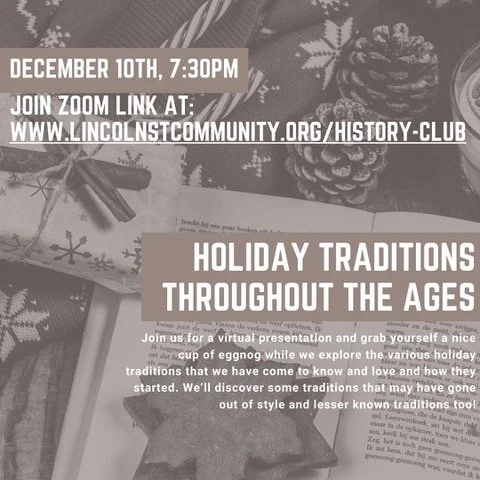 Grab a cup of eggnog and join us for a virtual presentation exploring the holiday traditions that we know and love, and how they began. We'll discover some traditions that may have gone out of style and lesser known traditions, too. Another entertaining and informative program for kids of all ages, particularly folks with a passion for the holiday season.